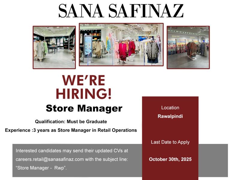 Apply now at “[email protected]”, mentioning the position “Store Manager – Rwp” in the subject line.