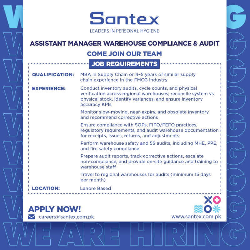 Position : ASSISTANT MANAGER WAREHOUSE COMPLIANCE & AUDIT