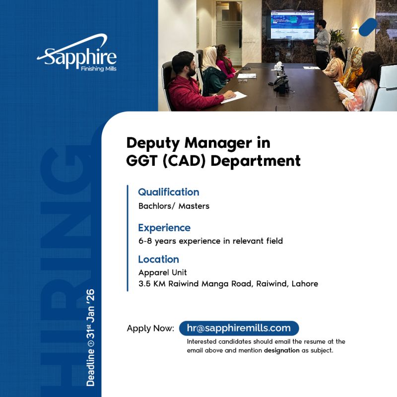 Sapphire Finishing Mills Jobs Deputy Manager: