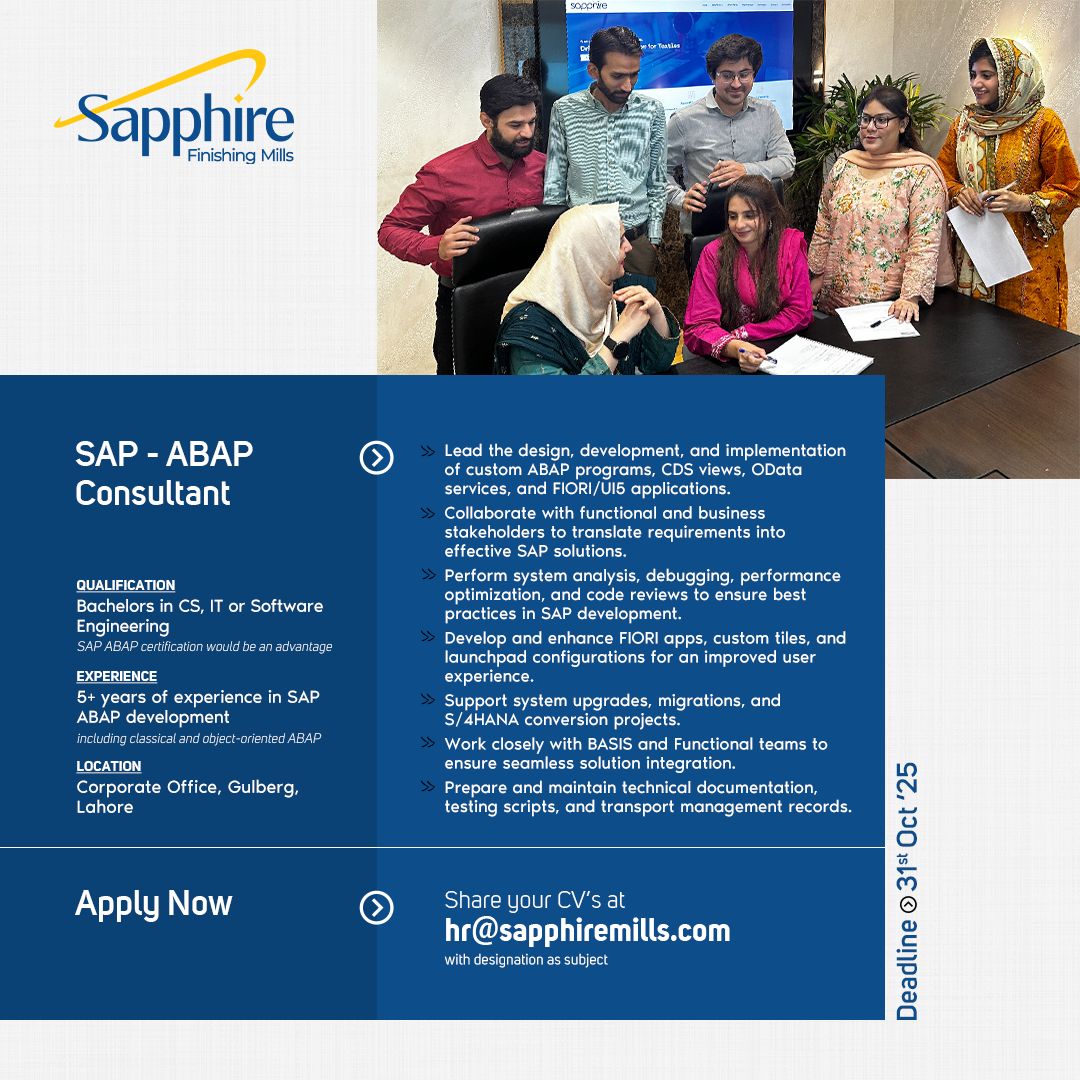 Sapphire Finishing Mills Jobs SAP ABAP Consultant 1