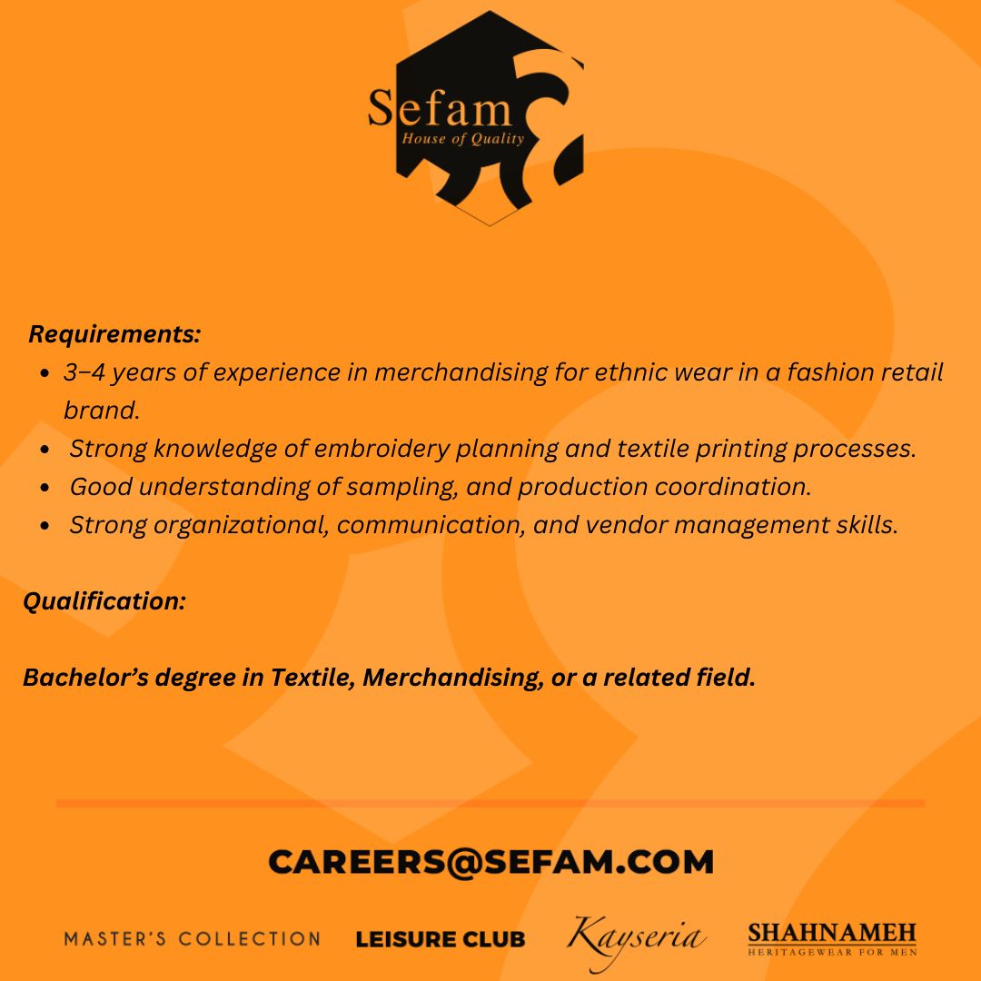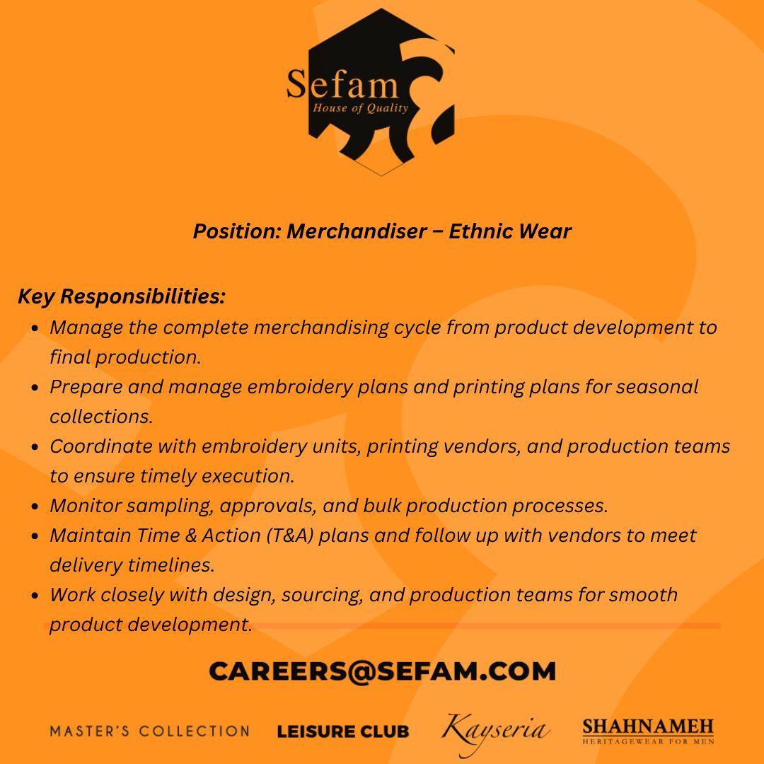 Sefam Pvt Ltd Jobs Merchandiser Ethnic Wear: