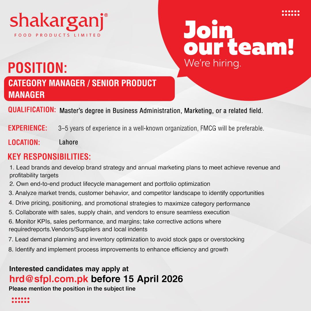 Shakarganj Food Products Limited Jobs Category Manager / Senior Product Manager