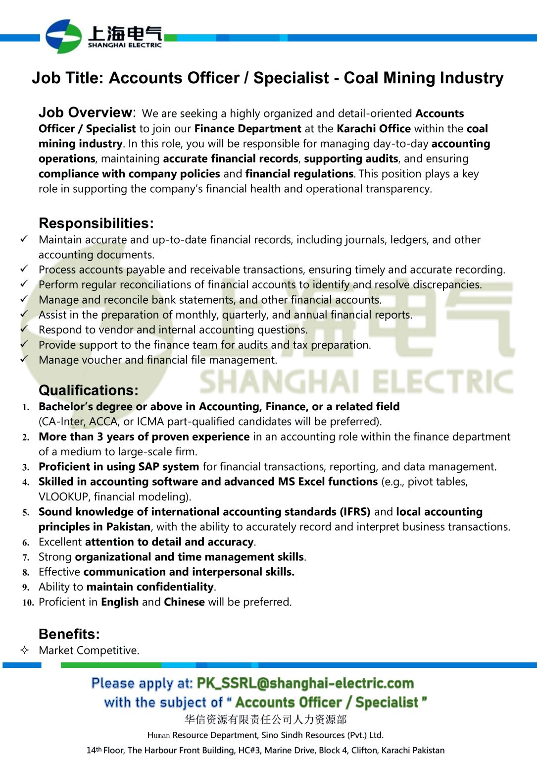 Shanghai Electric Pvt Ltd Jobs Accounts Officer / Specialist Coal Mining Industry: