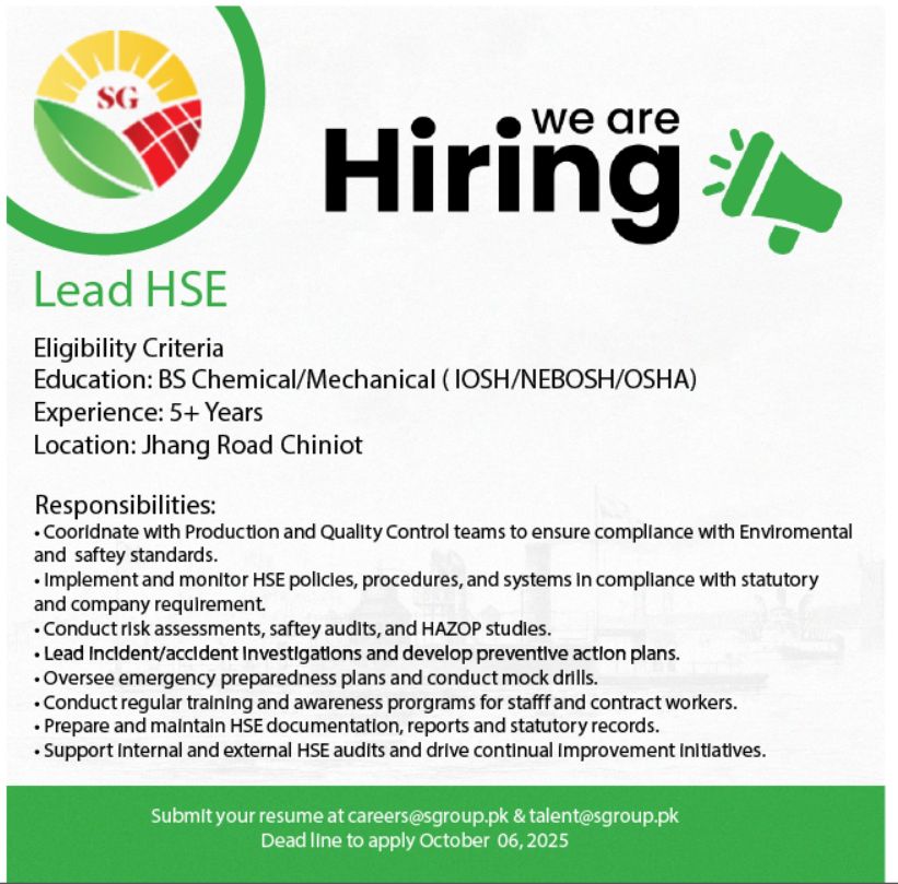Sharif Group is looking for an experienced Lead HSE with 5 years of hands-on experience in Process Industry preferably in the Ethanol industry.