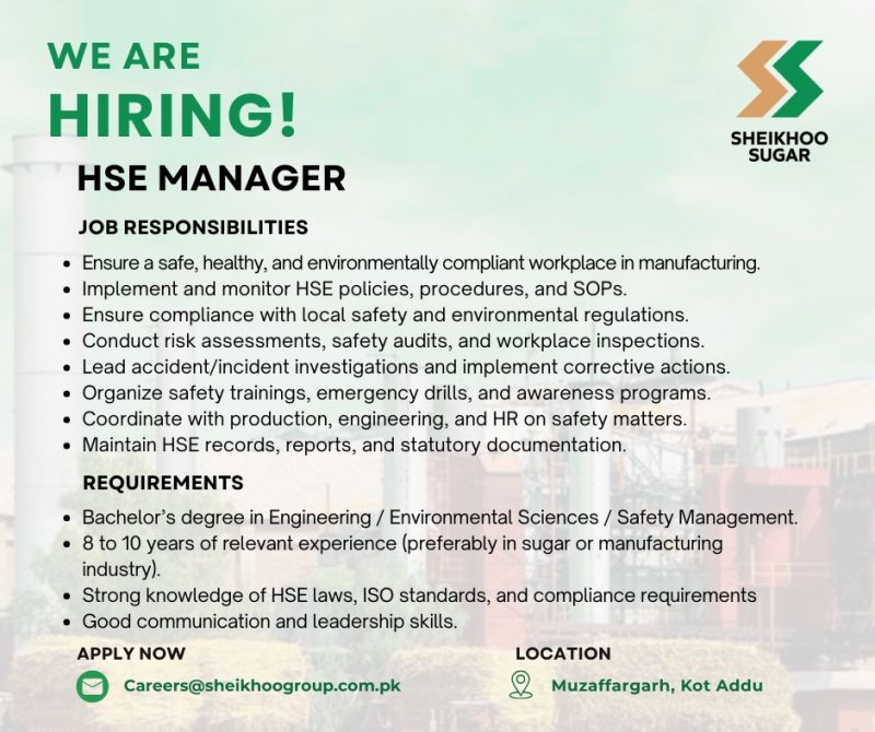 Sheikhoo Sugar Jobs HSE Manager: