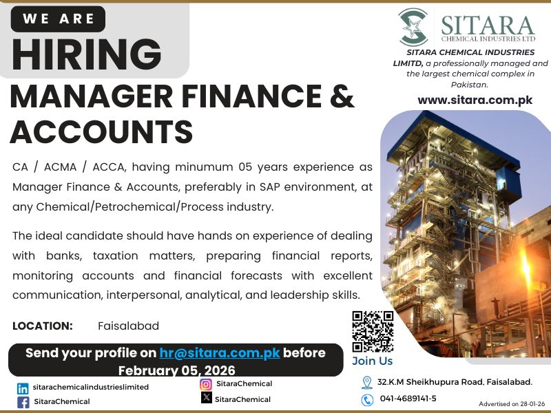 Sitara Chemical Industries Ltd Jobs Manager Finance & Accounts 1