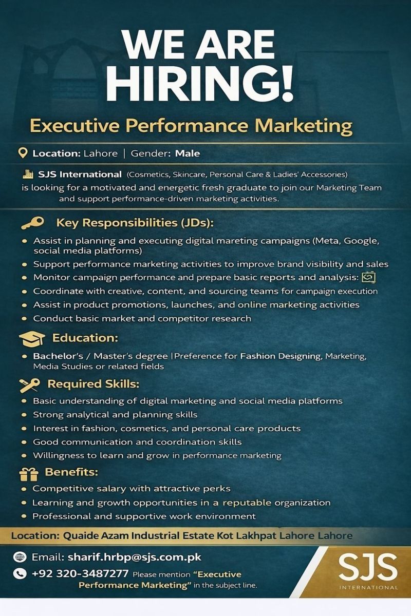 Email: [email protected] Phone: +92 320-3487277 Please mention “Executive Performance Marketing” in the subject line.