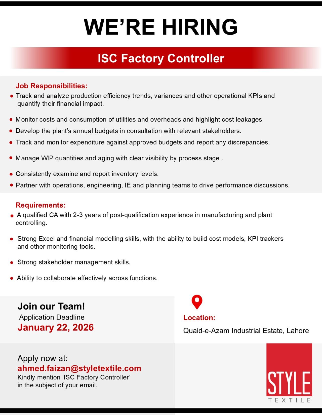 Apply now at: [email protected] Kindly mention ‘ISC Factory Controller’ in the subject of your email.