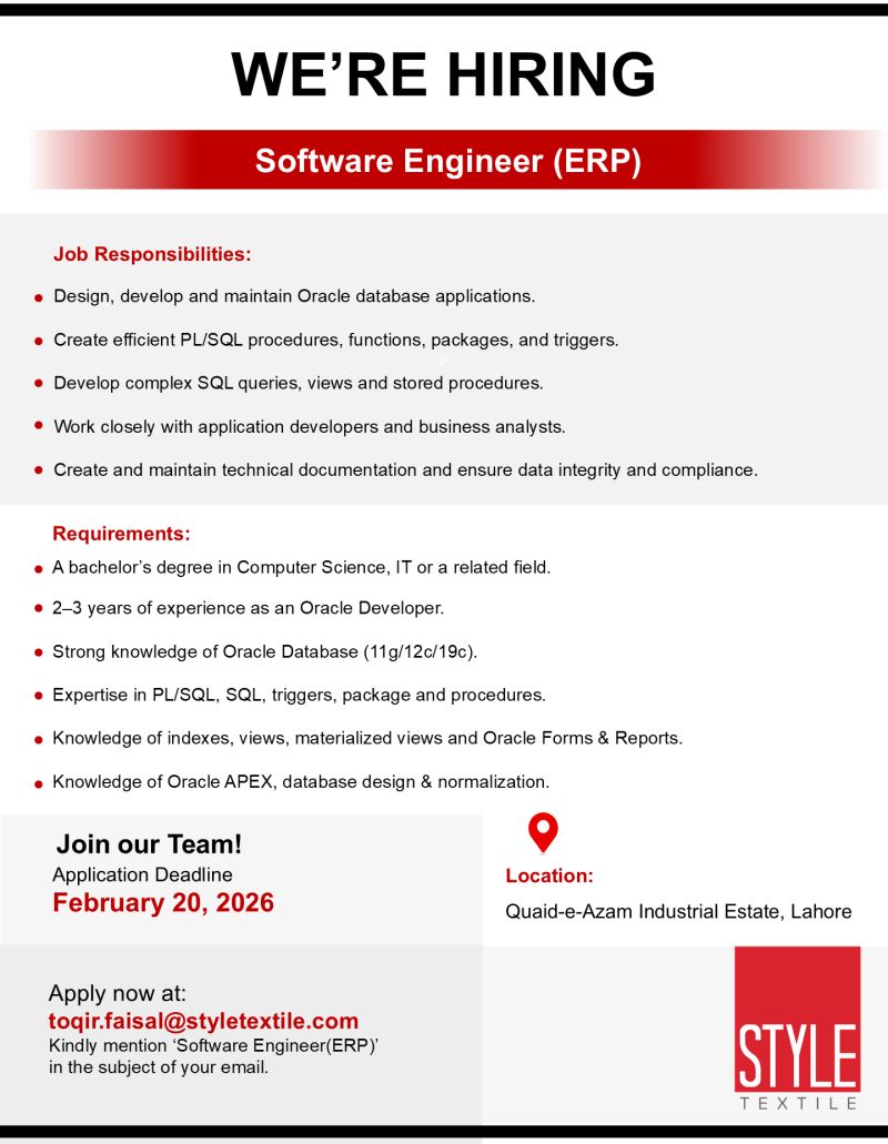 Style Textile Pvt Ltd Jobs Software Engineer ERP: