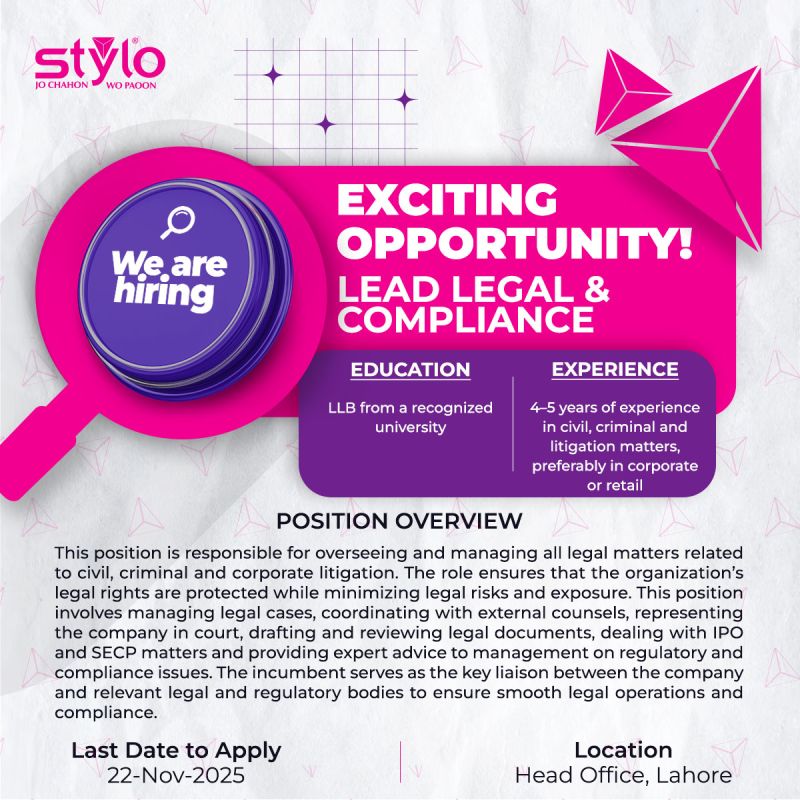 Stylo Pvt Ltd Jobs Lead Legal & Compliance :