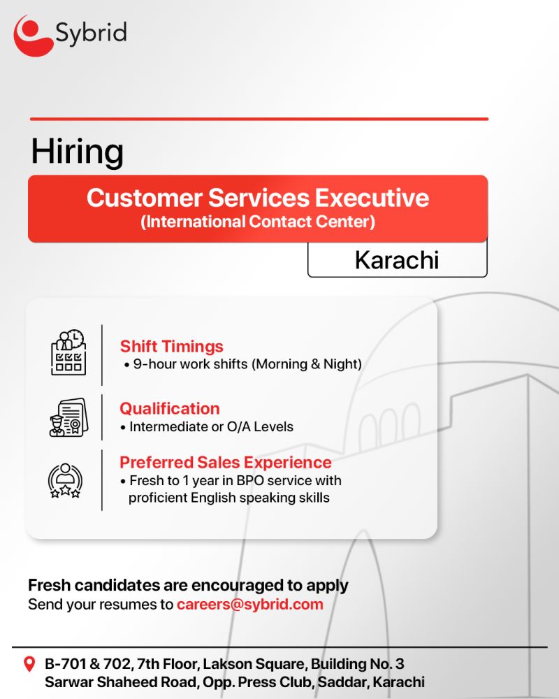 We are hiring Customer Services Executives (International Contact Center) for our Karachi office!