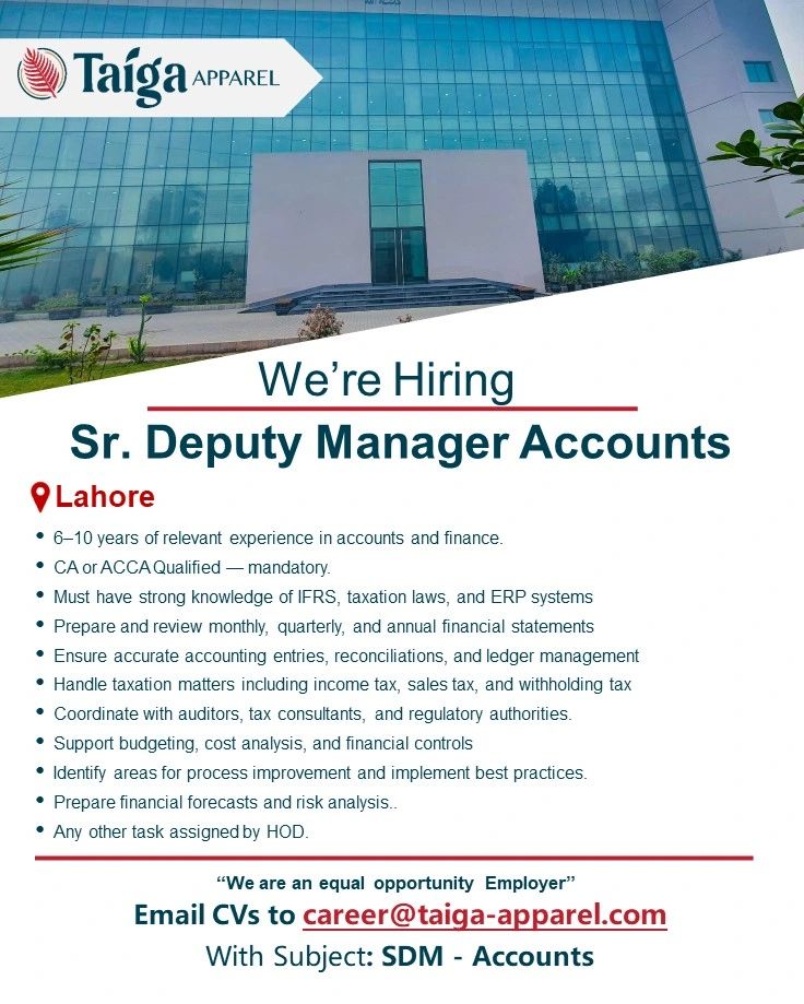 Position: Sr. Deputy Manager Accounts