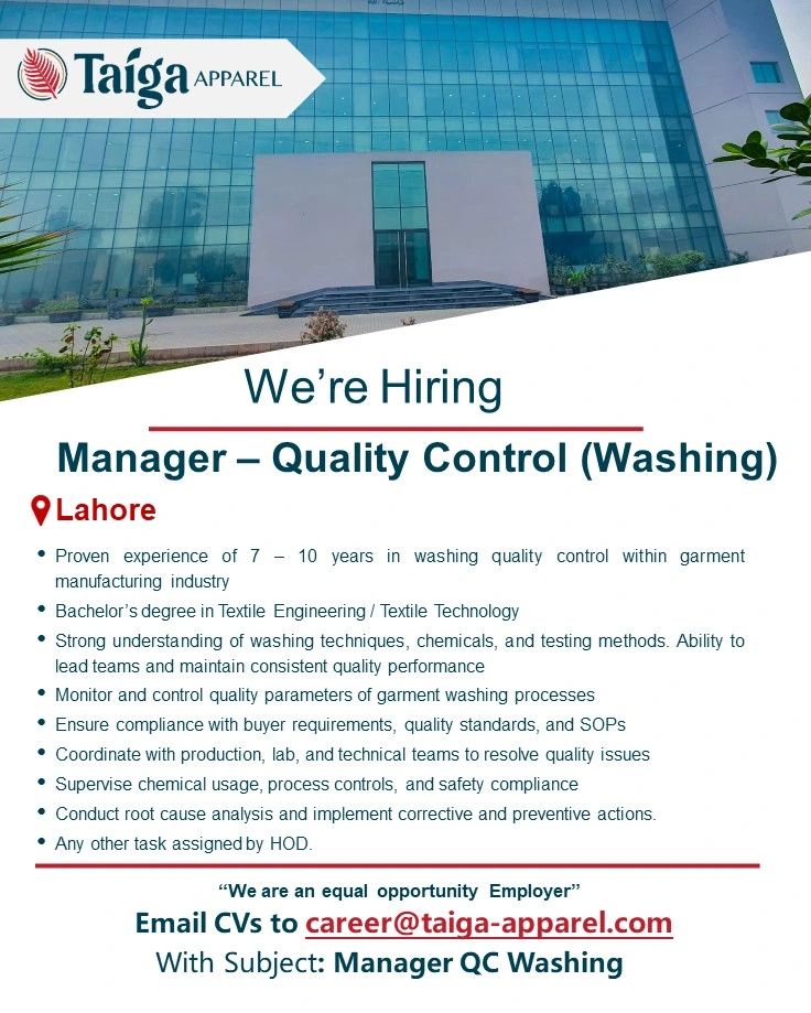 - Subject Line: Manager QC Washing