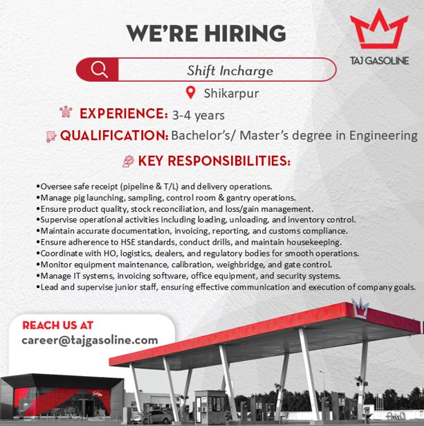 Taj Gasoline Pvt Ltd Jobs Shift Incharge