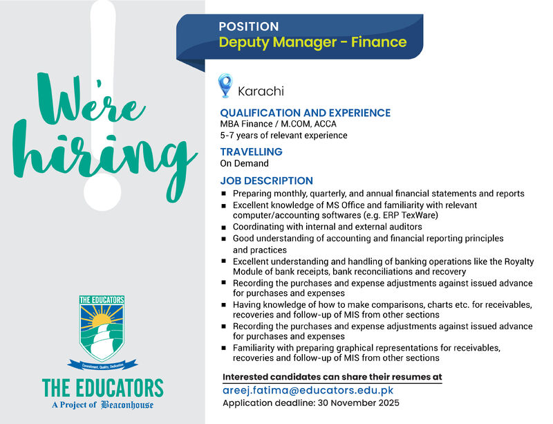 ▪ Excellent knowledge of MS Office and familiarity with relevant computer/accounting softwares (e.g. ERP TexWare)