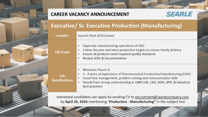 We are hiring for the position in Production (Manufacturing) | Karachi Plant