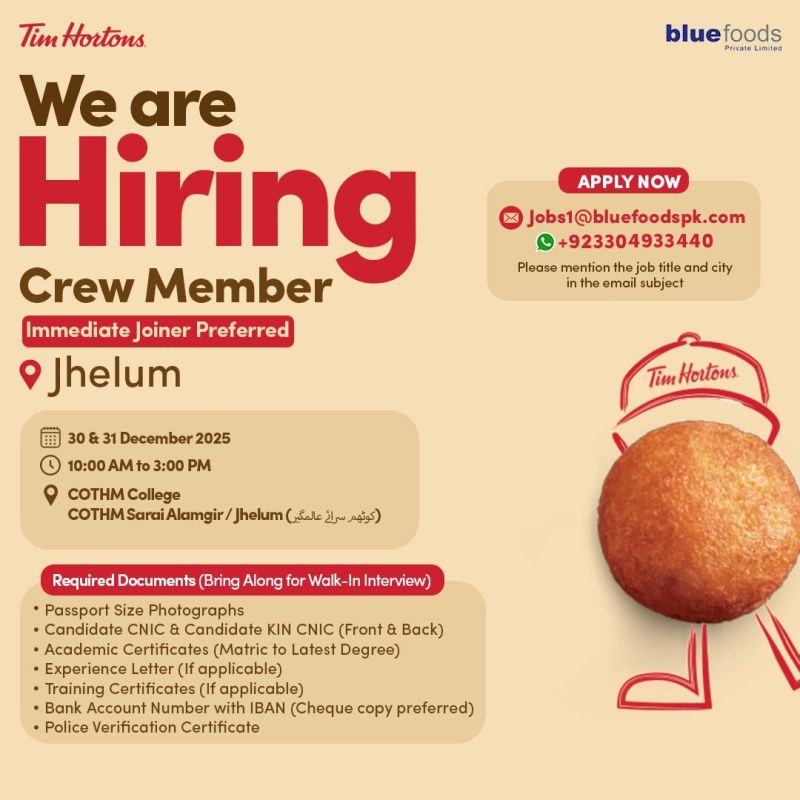 We are Hiring Crew Member
