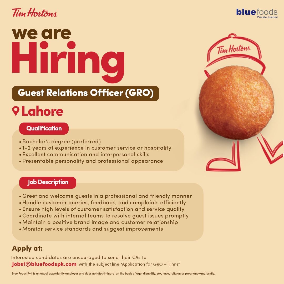 Tim Hortons Jobs Guest Relations Officer (GRO) :