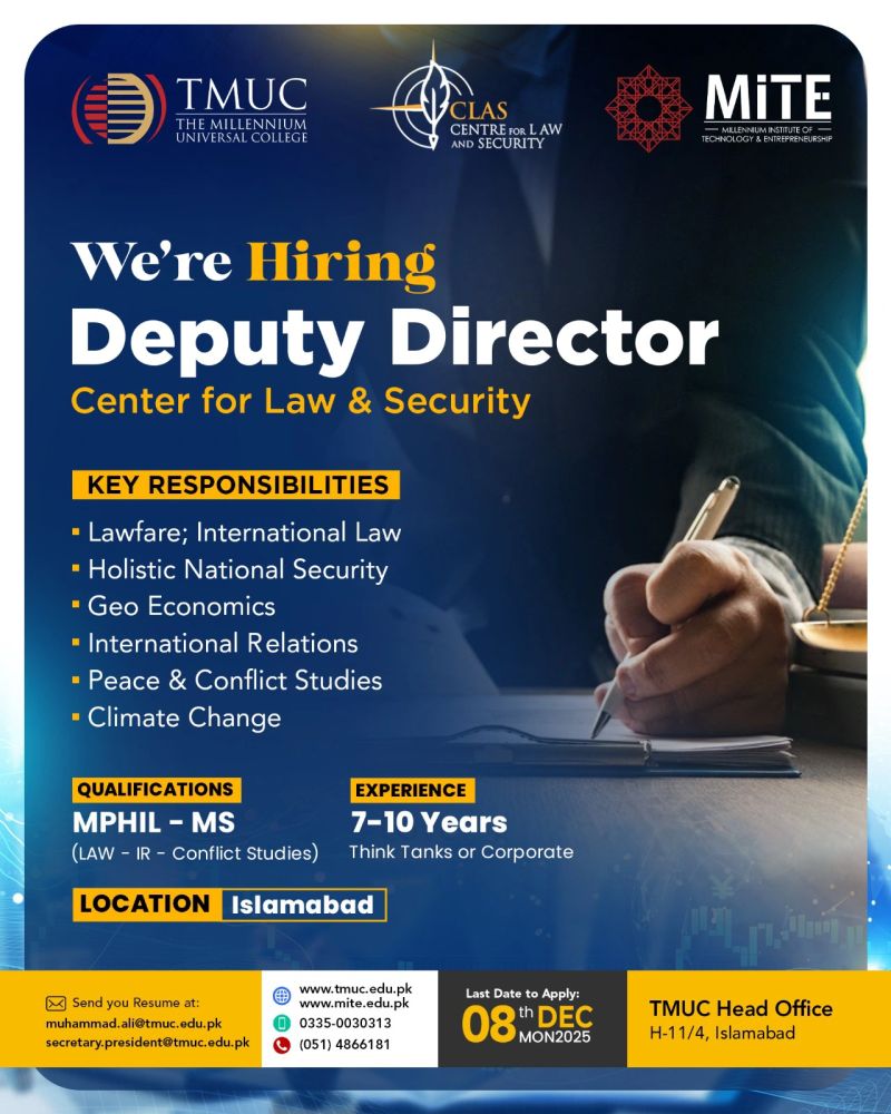 Position : Deputy Director – Center for Law & Security (TMUC)