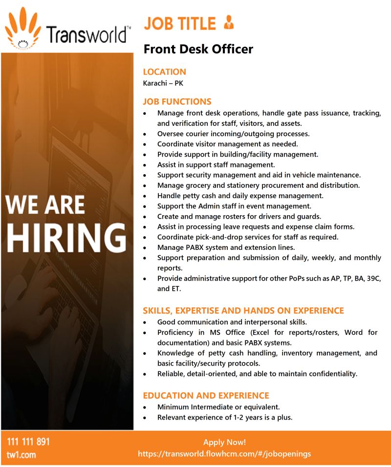Transworld Associates Jobs Front Desk Officer