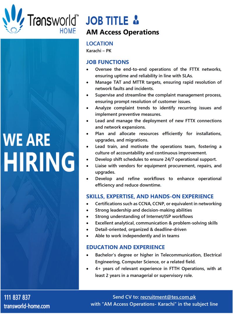 💡 If you have hands-on experience in FTTH/FTTX operations, enjoy leading teams, managing network performance, and ensuring service excellence — this role is for you!
