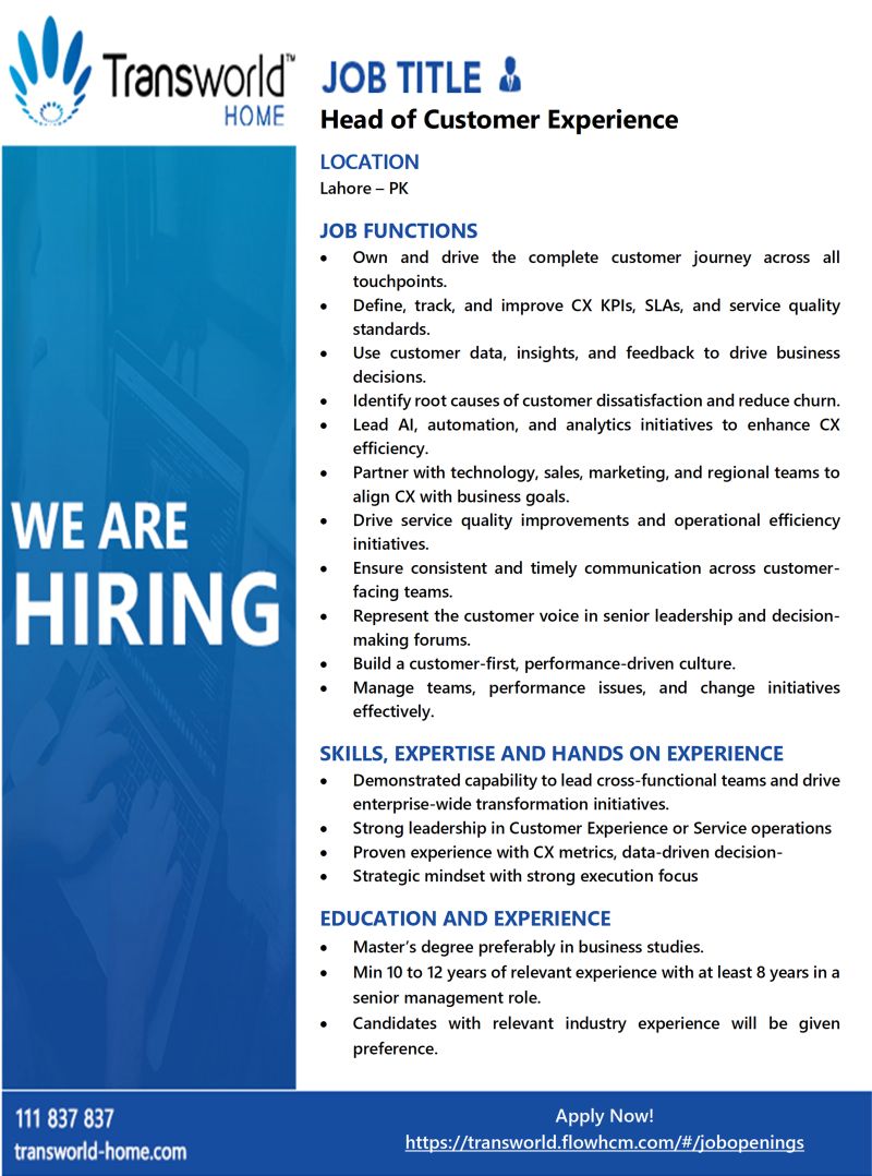 𝗛𝗲𝗮𝗱 𝗼𝗳 𝗖𝘂𝘀𝘁𝗼𝗺𝗲𝗿 𝗘𝘅𝗽𝗲𝗿𝗶𝗲𝗻𝗰𝗲