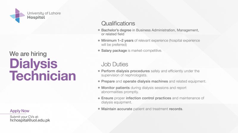 Join our dedicated healthcare team at the University of Lahore Hospital and contribute to safe, compassionate, and high-quality patient care.