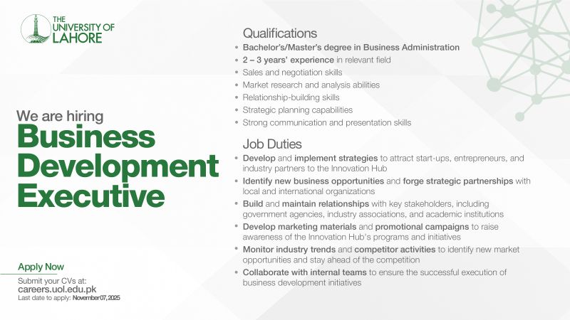 Are you a driven individual who turns ideas into impact? Join The Innovation Hub at The University of Lahore and be part of a team shaping the future of entrepreneurship and growth.