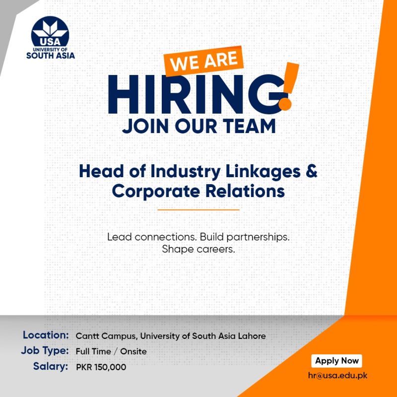 The University of South Asia is looking for a dynamic and well-connected professional to lead our Industry Linkages & Corporate Relations Department. This role is designed for someone who can strategically build partnerships, strengthen employer networks, enhance alumni engagement, and directly contribute to student career success.