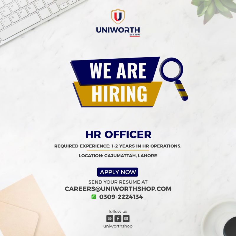 Uniworth, a leading men’s wear retail brand, is hiring for a 𝐇𝐑 𝐎𝐟𝐟𝐢𝐜𝐞𝐫.