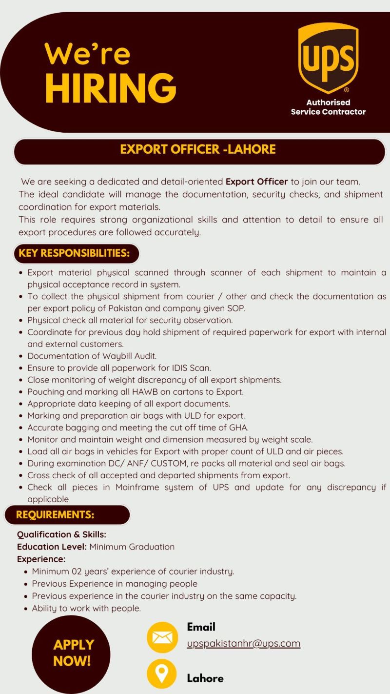 UPS Pakistan Jobs Export Officer: