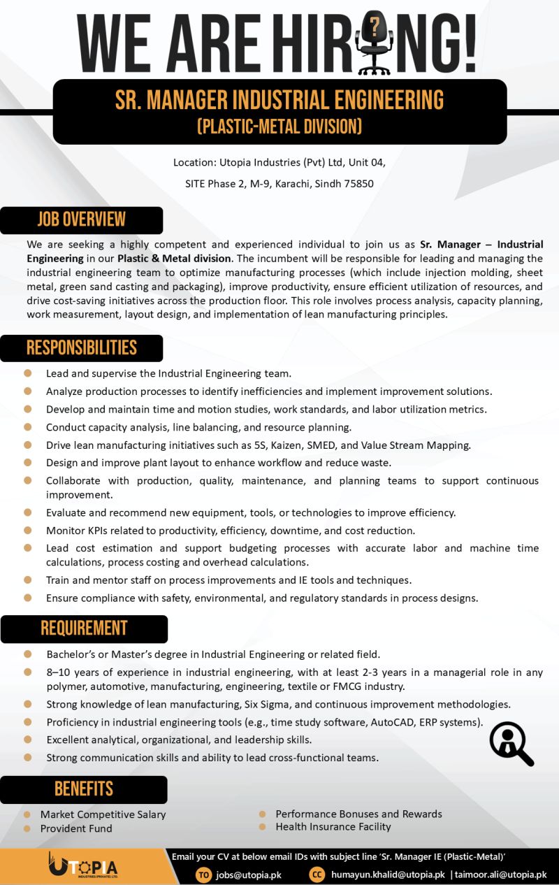 Utopia Industries Pvt Ltd Jobs Sr Manager Industrial Engineering 1