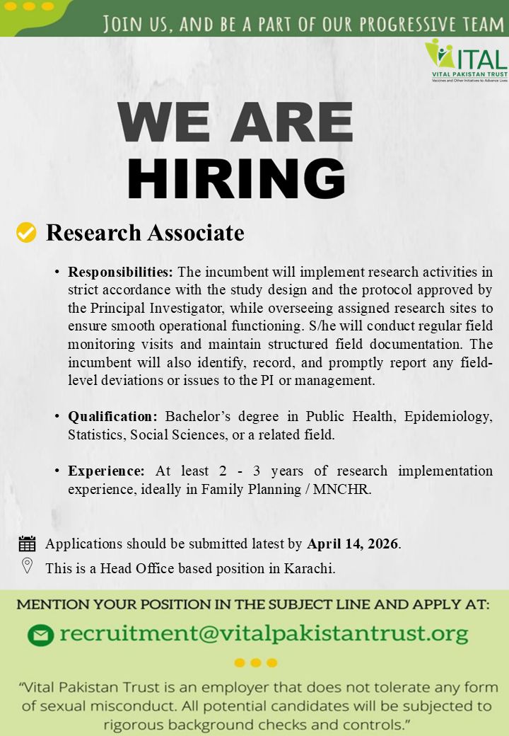 VITAL Pakistan Trust Jobs Research Associate 1