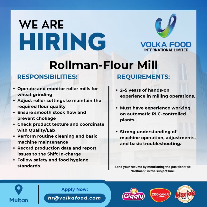 • 3–7 years of hands-on experience in milling operations.