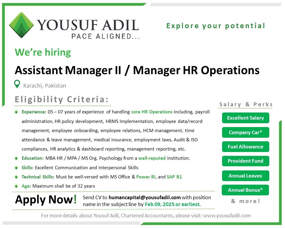 We’re hiring Assistant Manager II / Manager HR Operations Karachi, Pakistan