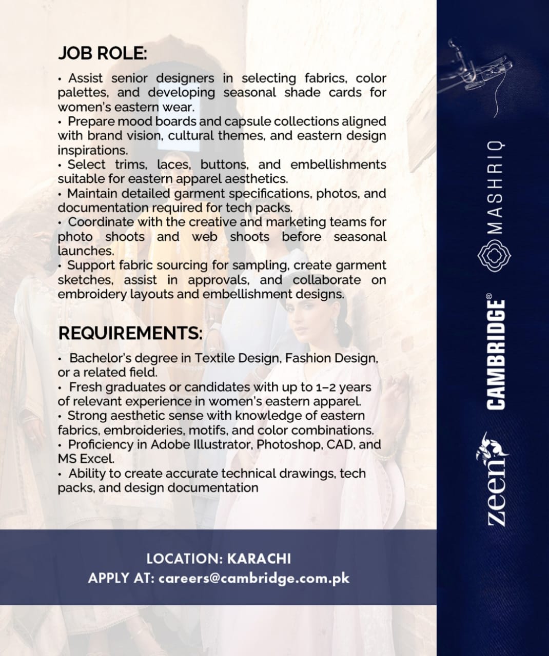 - Fresh graduates or candidates with up to 1-2 years of relevant experience in women’s eastern apparel.