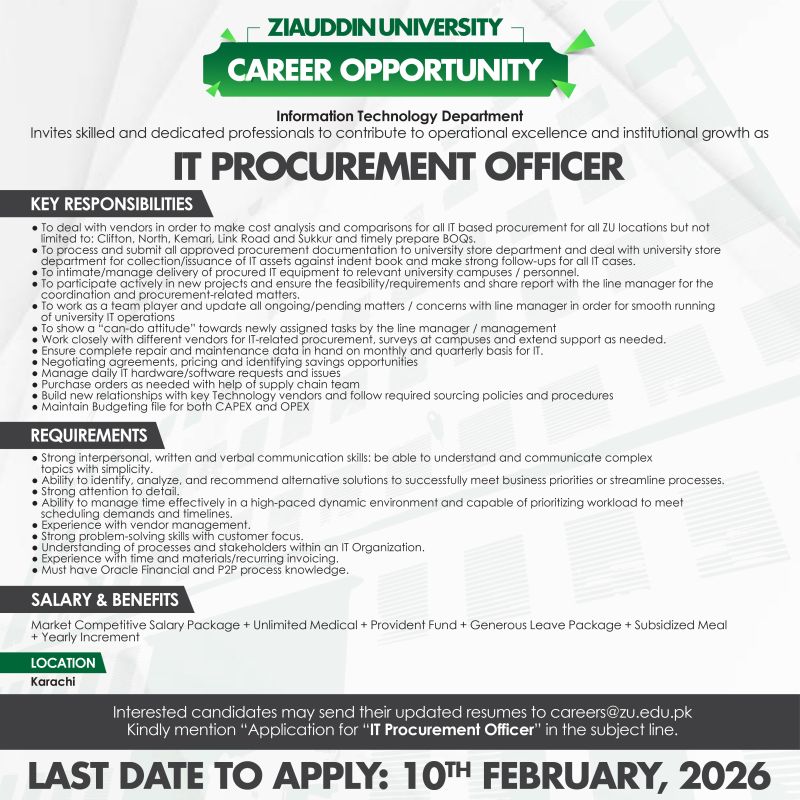 How to Apply: Interested candidates may send their updated resumes to [email protected] Kindly mention “Application for IT Procurement Officer” in the subject line.